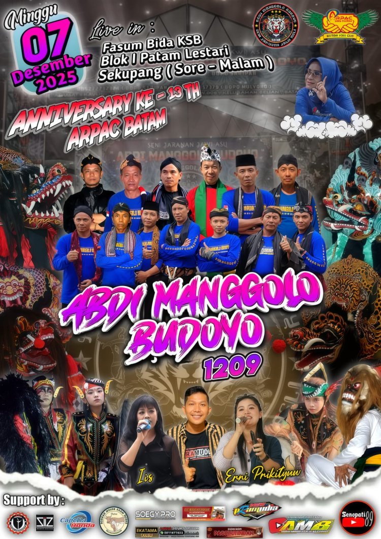 Batam24.com l Batam – Komunitas ARPAC Batam (Arek Pacitan Batam) akan menggelar Anniversary ke-13 pada Minggu, 7 Desember 2025, bertempat di Fasum Bida KSB Mentarau Blok I, Patam Lestari, Sekupang, mulai pukul 13.00 WIB hingga selesai.