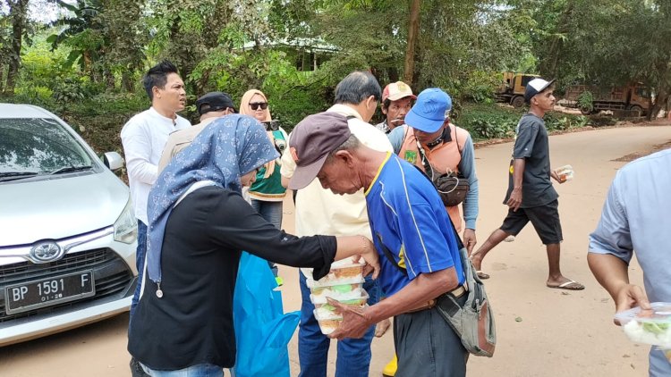 Foto Awak media sedang bagikan Nasi Kotak di TPA Punggur