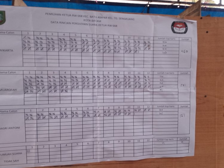 Dengan perolehan tersebut, Muarofah resmi memenangkan pemilihan Ketua RW 008 Tanjung Sengkuang periode mendatang.